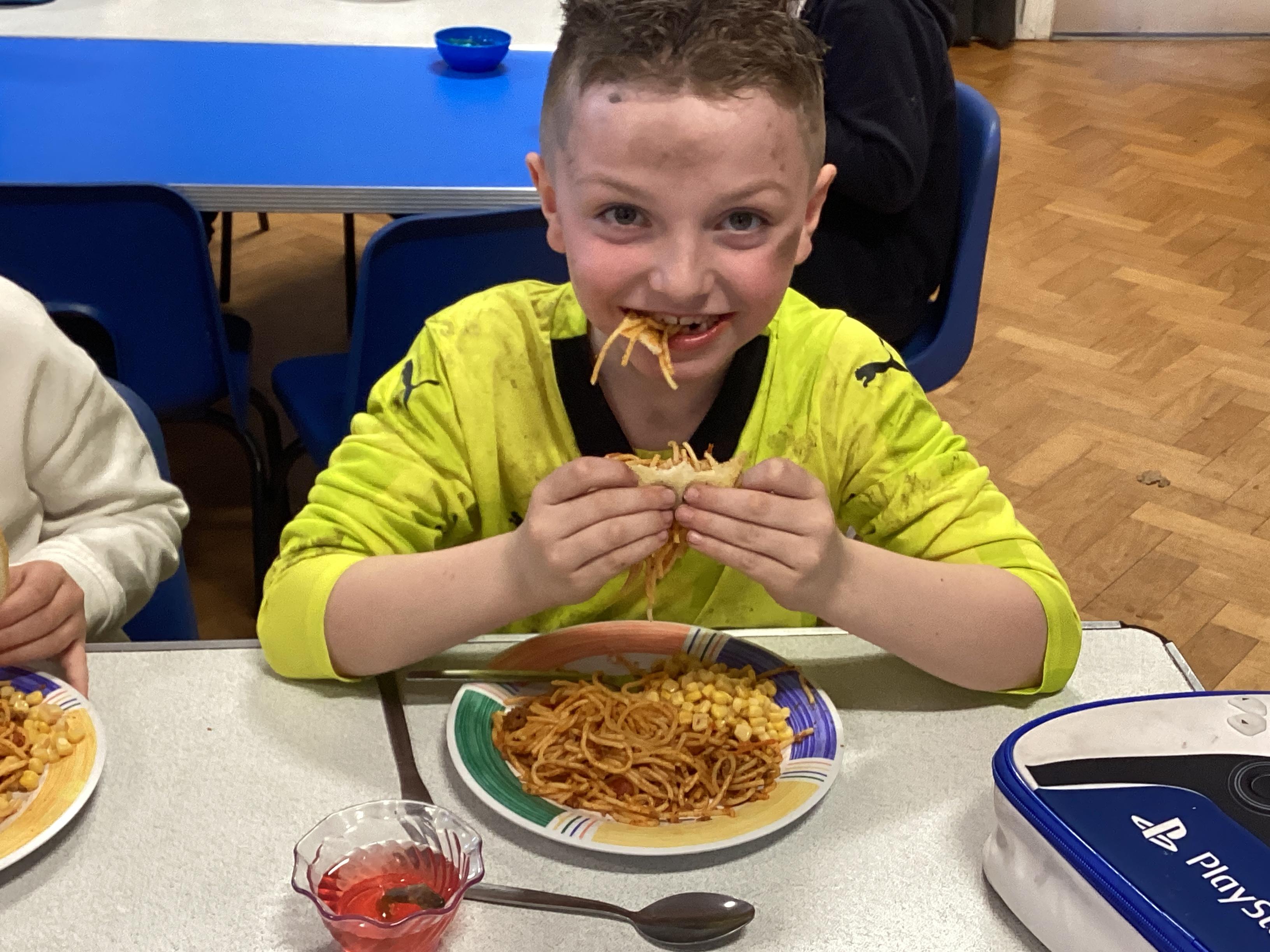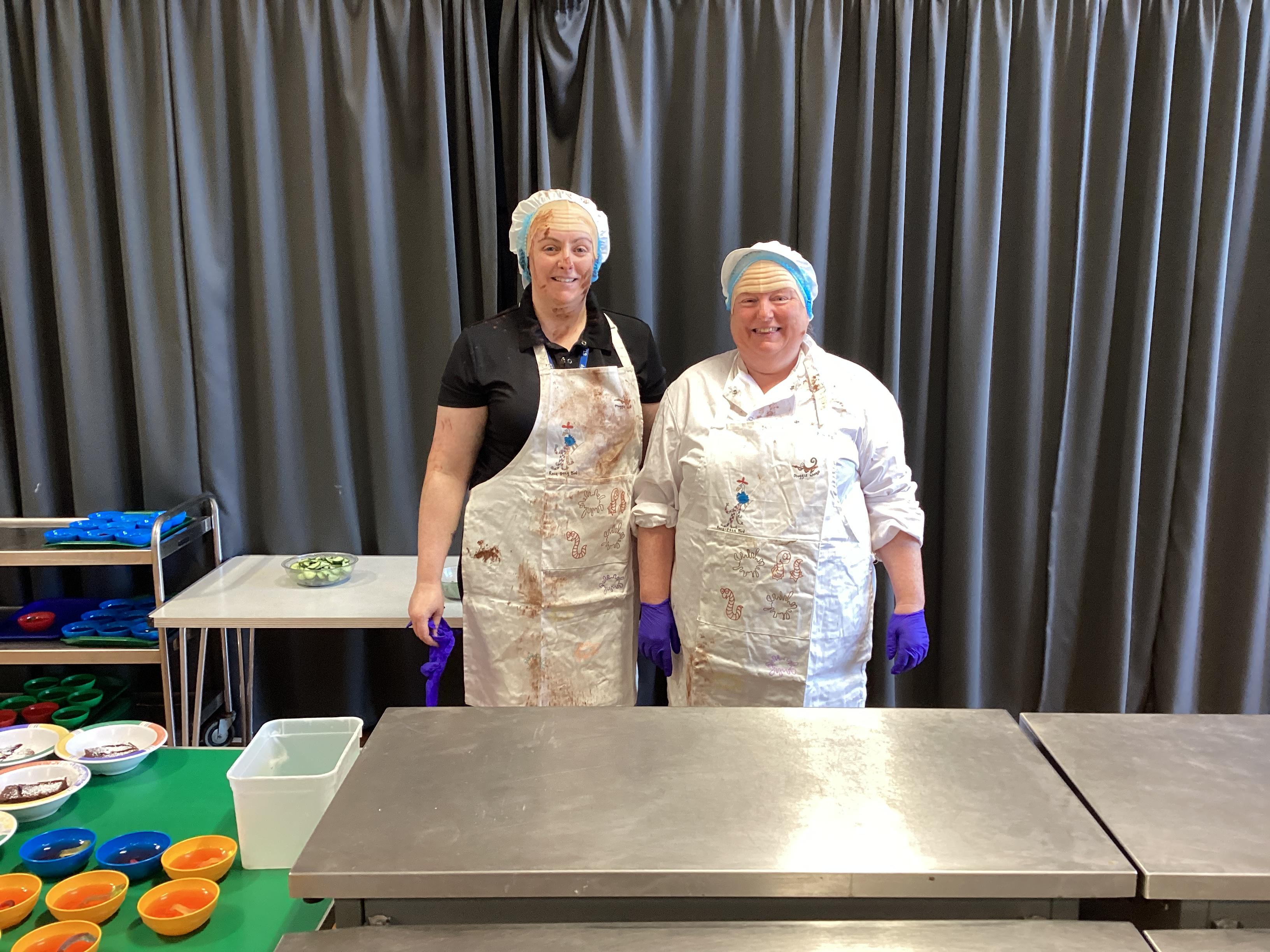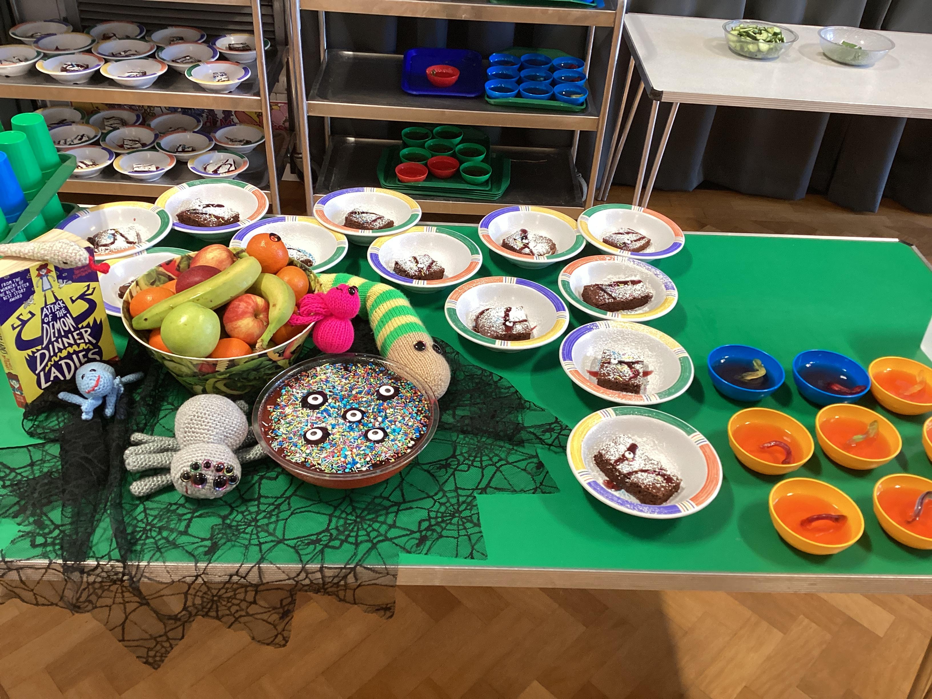 The children enjoyed tucking into their 'revolting' dinner of worms and eyeballs made by the Demon Cooks.