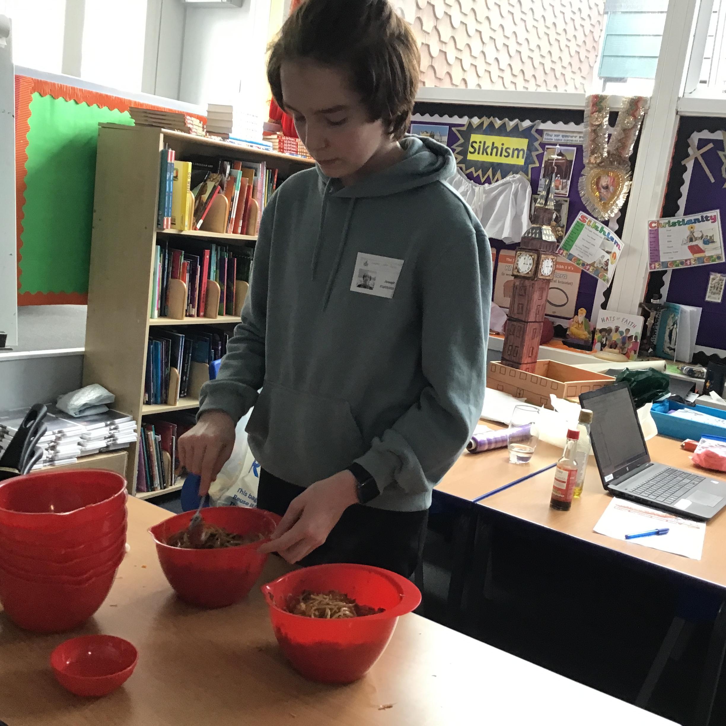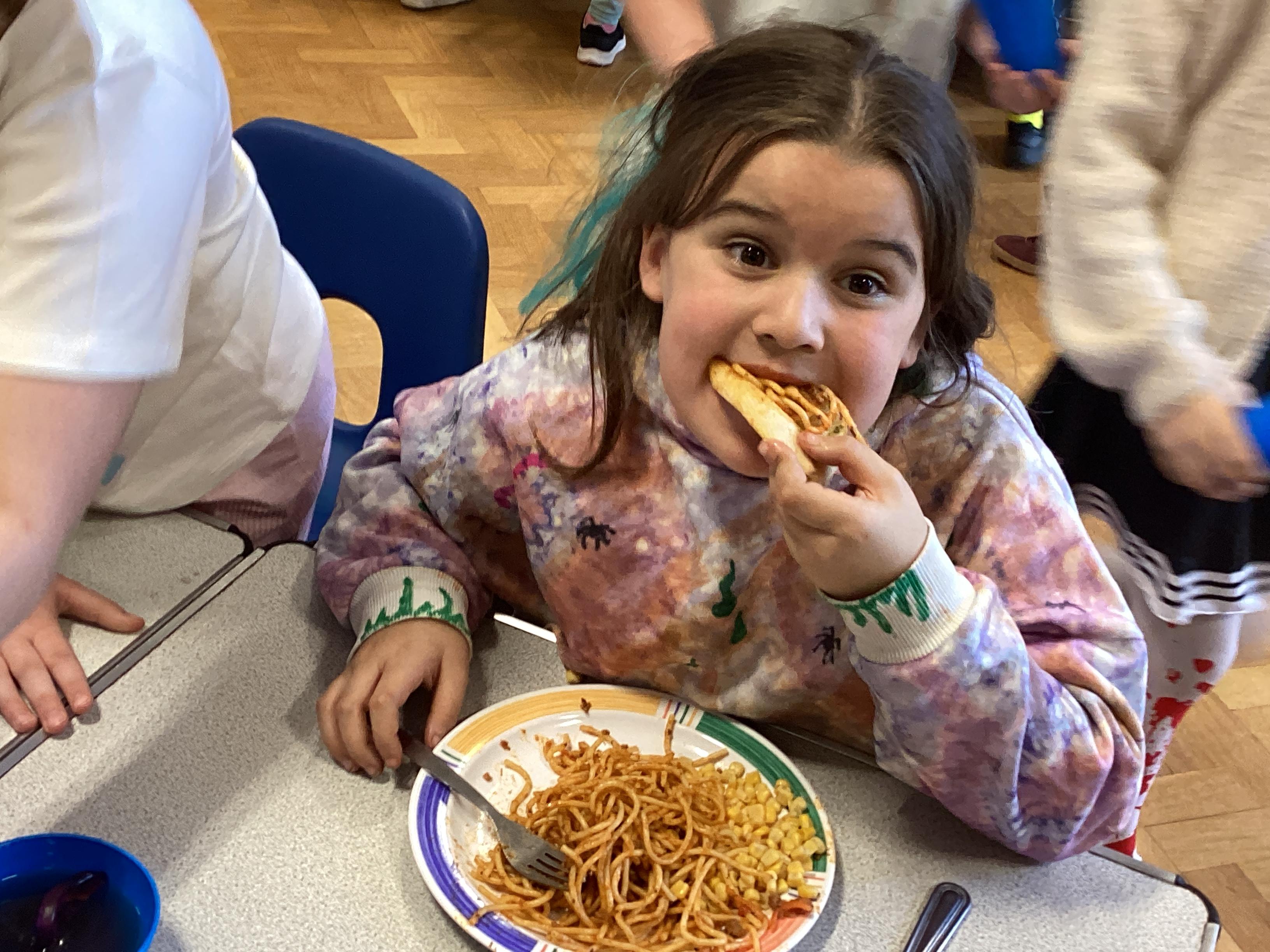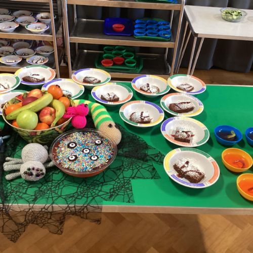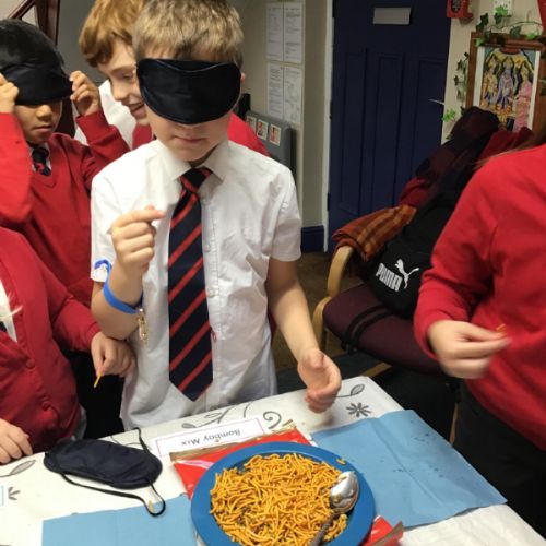 The children enjoyed tucking into their 'revolting' dinner of worms and eyeballs made by the Demon Cooks.