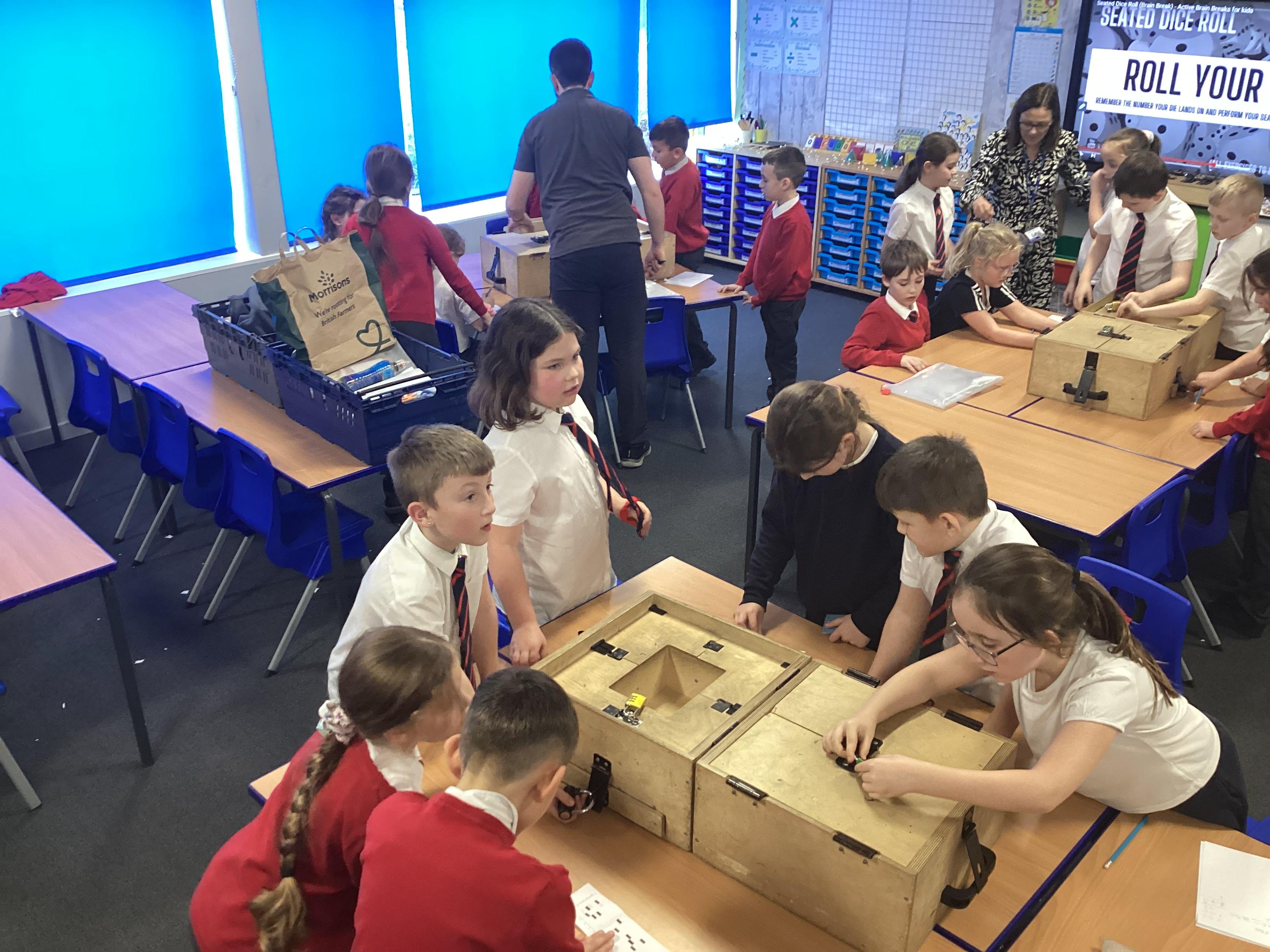 The whole school had fun and lots of challenges trying to unlock the boxes. They had to solve different riddles and clues using their maths skills. They had to race against the clock!