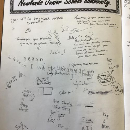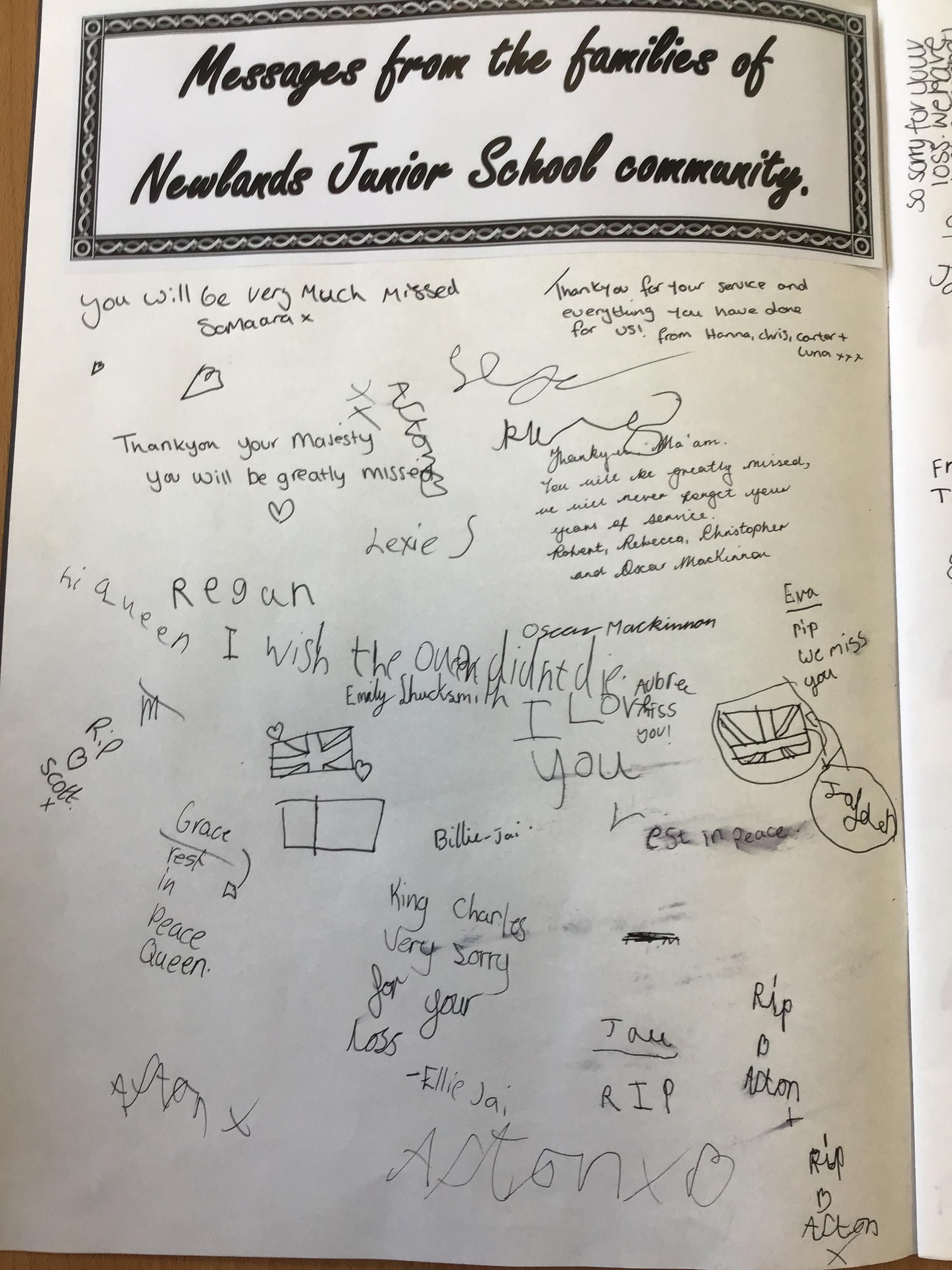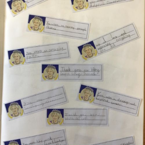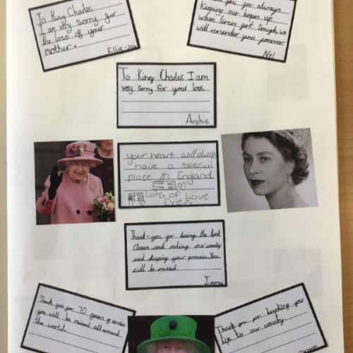 Following the sad news of the death of Her Majesty Queen Elizabeth II, we came together as a school and a community to send our deepest condolences to King Charles. Each year group wrote special messages to the queen in a book of remembrance, we also invited member of our school community to write their own messages. We will be sending our book off to King Charles with our finished messages.