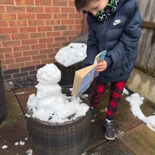 On 19th November 2024 the children were asked to build a snowman and then read it a story.